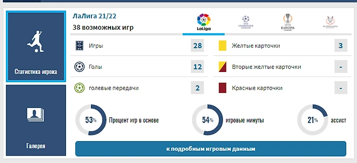 За 28 матчей 12 голов и 2 голевые передачи, что не так уж и плохо, но не в ситуации Мемфиса. Скорее всего летом он покинет "Барселону", и ой как я не уверен, что его захочет купить какой-нибудь топовый клуб. И вряд-ли уже в свои 28 лет он заиграет где-нибудь достойно.