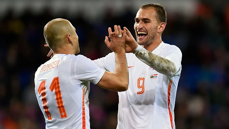 Дост празднует свою первую и единственную международный голь для Нидерландов в ноябре 2015 года