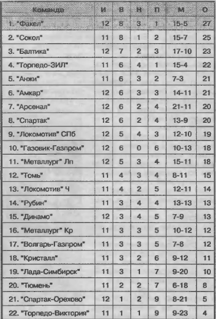 Вот так выглядела турнирная таблица перед стартовым свистком.