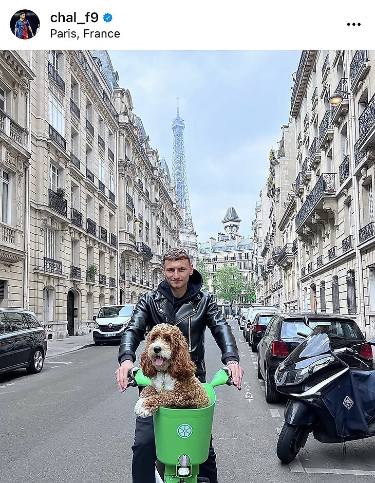 Нападающий армейцев Федор Чалов, отыгравший вторую часть сезона в швейцарском «Базеле», отправился в Париж, где на мопеде прокатился по извилистым улочкам со своим псом породы кокапу (помесь кокер-спаниеля и пуделя).