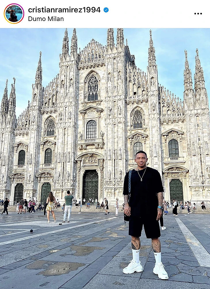 Покинувший расположение «Краснодара», но пока не расторгший контракт эквадорец Кристиан Рамирес проводит время в Италии. Сначала посетил Пьяцца-дель-Дуомо – главную площадь Милана, где недавно ликовали болельщики «россонери», взявшие золото впервые за 11 лет.