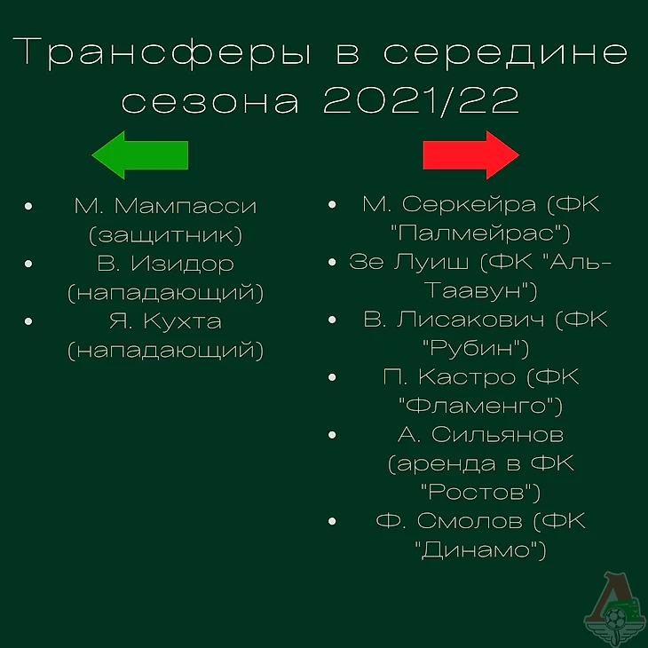 Изменения в составе в зимнее трансферное окно: