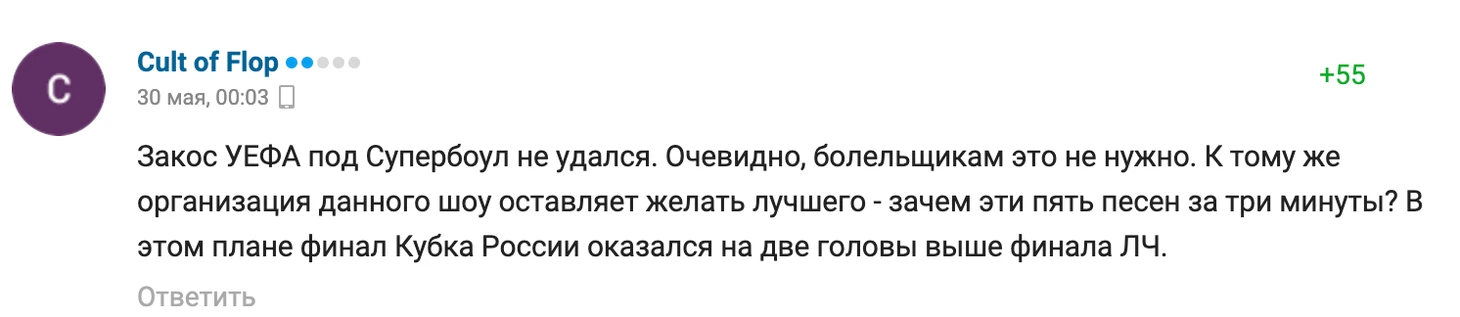 В комментариях на Sports.ru в топе такие же комментарии – люди не понимают, что связывает футбол и выступление поп-звезды.