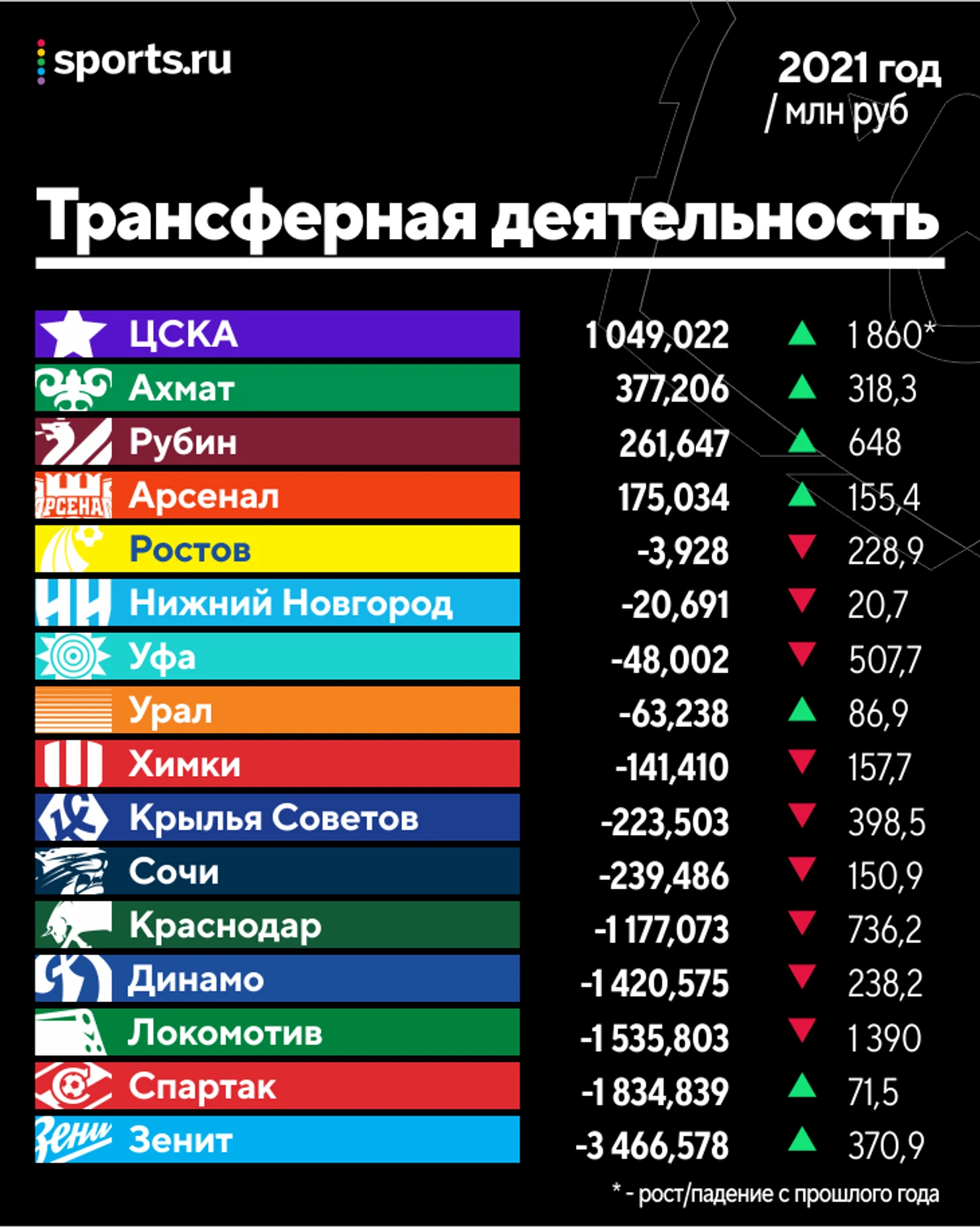 • Только четыре клуба оказались в трансферном плюсе по итогам года. В том числе и «Рубин»!