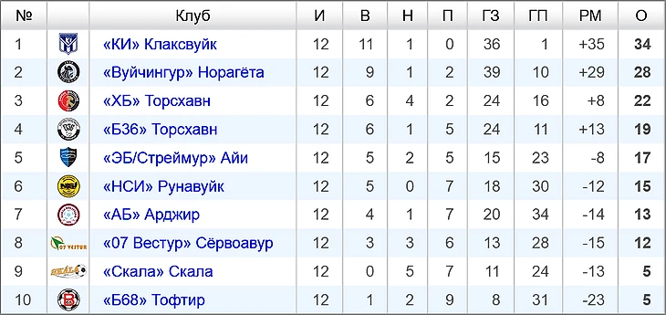 Турнирная таблица фарерской премьер-лиги