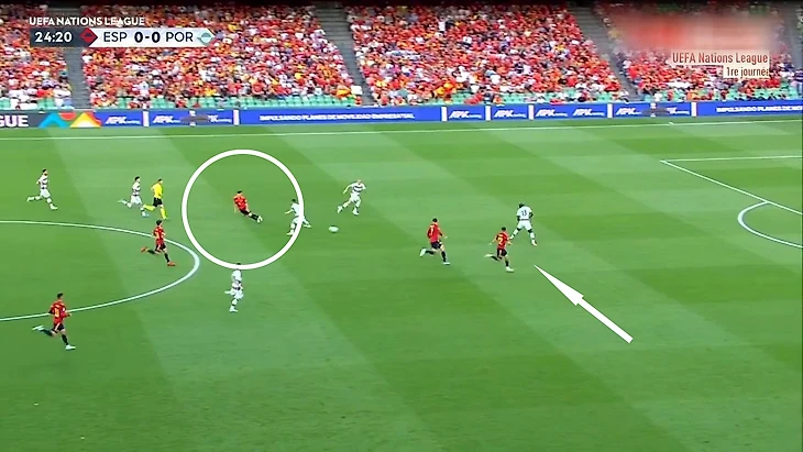 Именно тинейджер «Барсы» разогнал голевую атаку: убежал от Бруну Фернандеша: