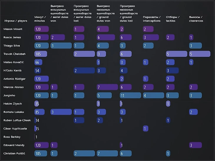 Защитные показатели игроков "Челси" против "Ливерпуля"!