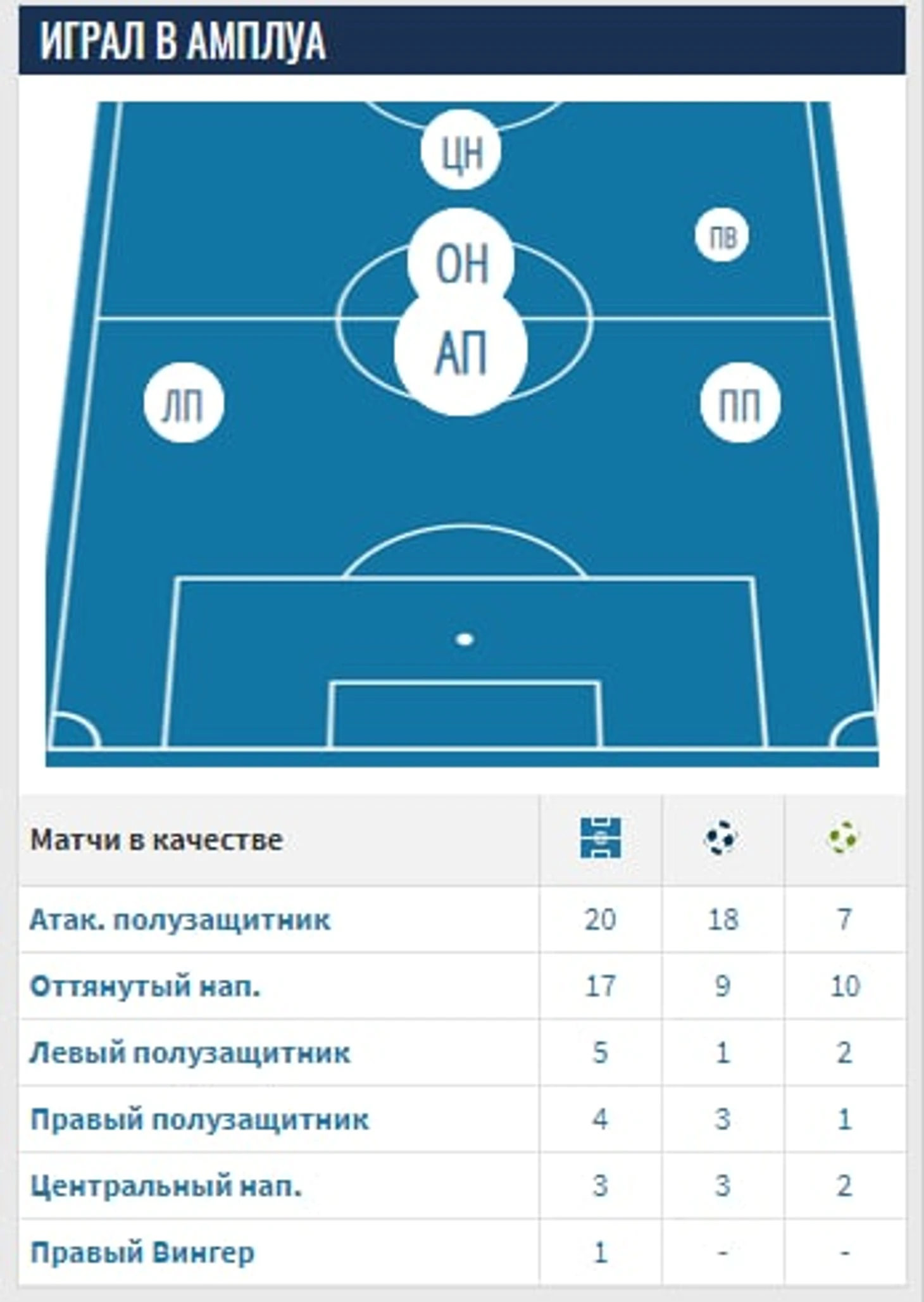 Согласно трансфермаркту, большую часть матчей этого сезона он играл на позиции атакующего полузащитника или под нападающим. Едва ли можно утверждать, что он чистый нападающий (всего 3 матча из 51).