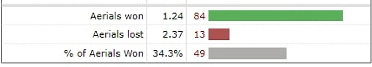 У всех игроков довольно низкое количество выигранных единоборств "на втором этаже", а в этом году по этому показателю они стали еще хуже.