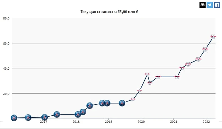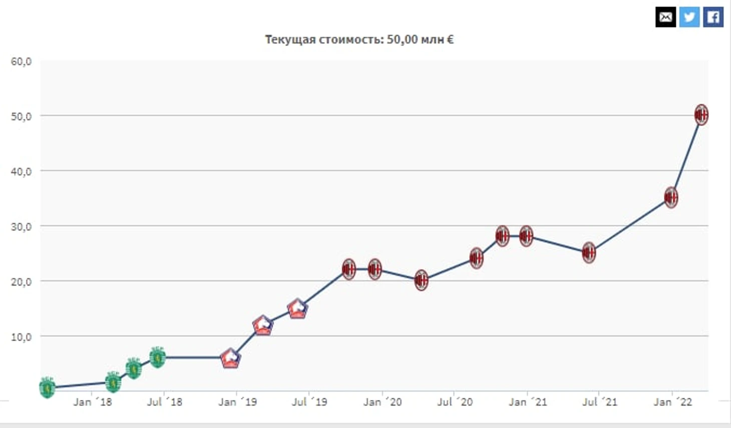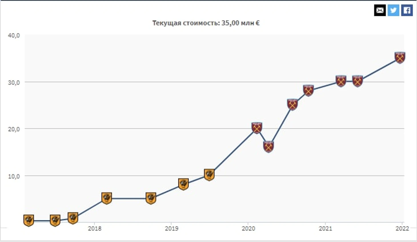 С момента перехода в английскую команду наблюдается значительный рост стоимости, т.е. уже два год он высоко оценивается как экспертами, так и рядовыми болельщиками.