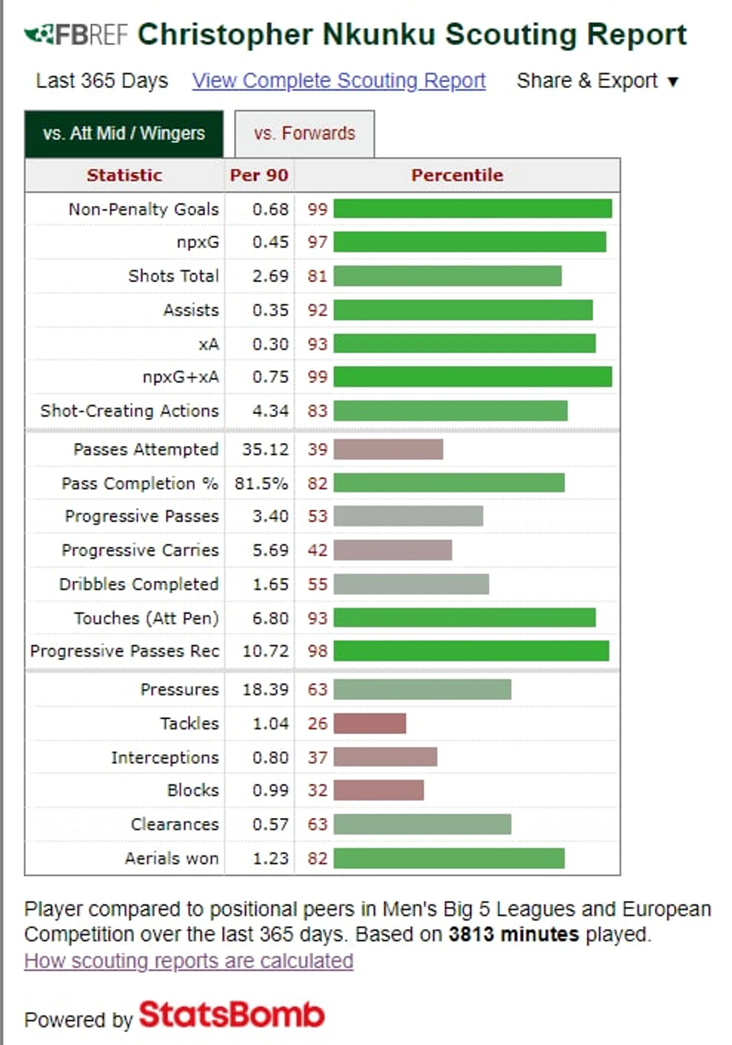 Нкунку в сравнении с прошлым сезоном достиг определенного прогресса в дриблинге и отданных ассистах. Но кто действительно в этом сезоне прибавил, так это Леао.