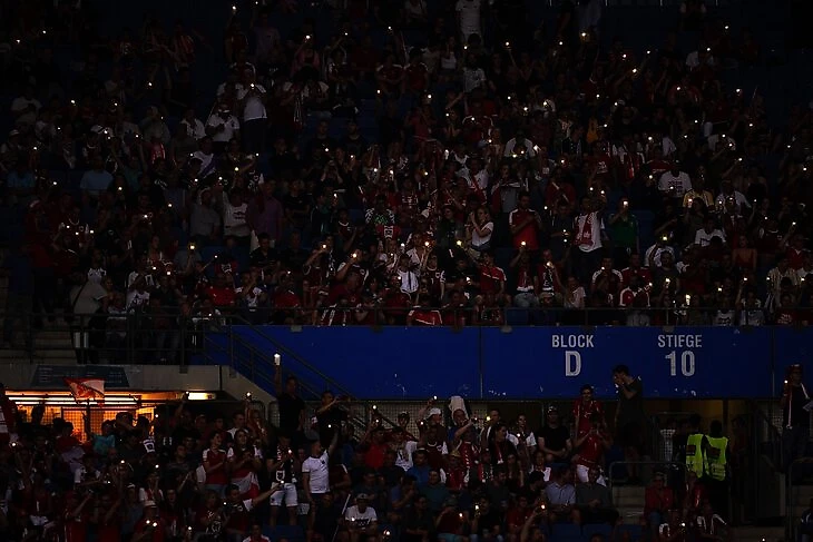 На матче Австрии и Дании выключили электричество. Фанаты скрасили ожидание ярким шоу