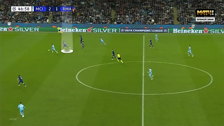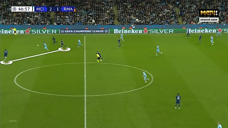 Милитао разрывался, и партнерам приходилось страховать. Из-за хорошей скорости Эдер обычно успевает вернуться на позицию и тушить пожары, но «Реал» все равно получает невыгодную для себя ситуацию.