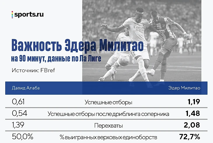 Алаба дал «Реалу» опыт и качества Рамоса в продвижении мяча вкупе с хладнокровием Варана. Милитао взял агрессивную манеру игры от Серхио и мастерство страховать от Рафы.