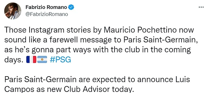 «Эти сторис Маурисио Почеттино звучат как прощальное послание «Пари Сен-Жермен», поскольку в ближайшие дни он собирается расстаться с клубом».
