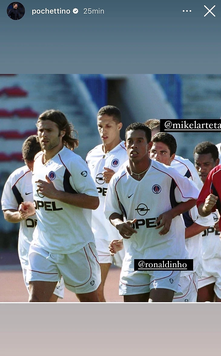На фото – Поч с трофеем Лиги 1 в качестве тренера, а также его фото в форме «ПСЖ» в качестве игрока. На одной из них он отметил Роналдиньо и Микеля Артету, с которыми играл в Париже, а еще одна подписана: «Хорошие воспоминания».