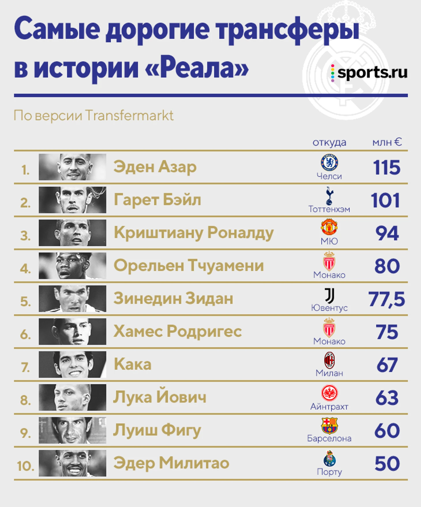 Один из самых скандальных переходов в истории футбола. Переходил в «Реал» за лигочемпионским престижем, но величие пострадало. «Барса» помнит о нем только плохое, а в галактической сборной Переса Фигу не потерялся. Просто стал всего лишь одним из бриллиантов.