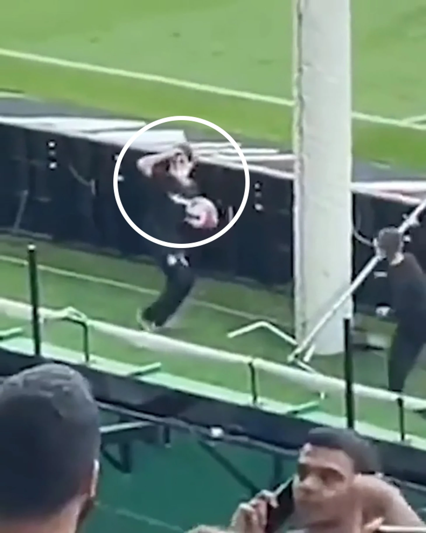 После того, как мяч вышел из игры в штрафной Чехии, Криш ненадолго оперся на рекламный бортик, и тут подбежал болбой.