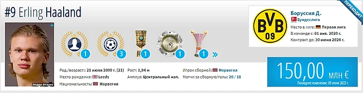 1) Эрлинг Холанд (Боруссия Д/Манчестер Сити)