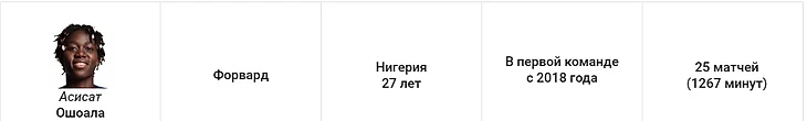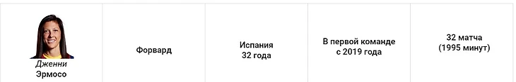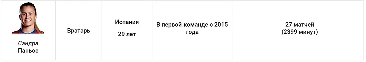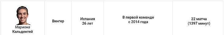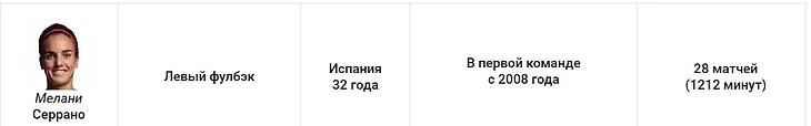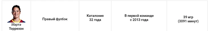 У этого защитника не было конкуренции. Торрехон – лидер команды по количеству игровых минут (3620), и начала 44 из 47 матчей в старте. Марта застолбила за собой правый фланг и оказалась как никогда активна в атаке. На её счету восемь голов и семь ассистов.