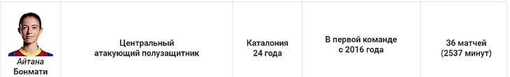 Не обязательно быть капитаном, чтобы играть важную роль в команде. В этом году игрок Айтана сделала шаг вперёд. Она была лидером, бомбардиром и определяющим фактором в ключевых матчах. Бонмати показала мастер-класс в обеих играх на «Камп Ноу»: против «Реала» и «Вольфсбурга».