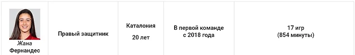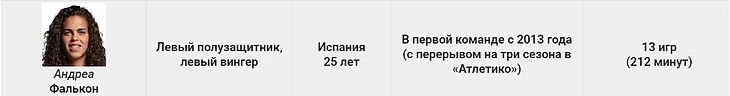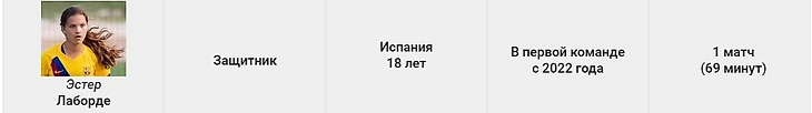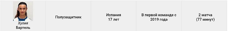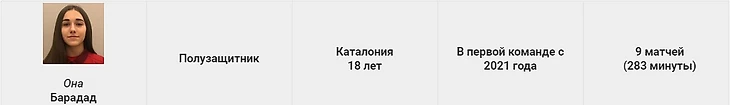 Она дебютировала в первой команде в матче с «Леванте». Ещё один защитник (17 лет), на которого стоит обратить внимание в будущем.