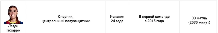 Вся игра команды проходит через неё. Патри – идеальный распасовщик. В клубе, где центр поля так важен для игровой философии, балеарка доказала, что является лучшей на своей позиции. Отлично играет в обороне и очень активна в атаке. Прекрасный сезон.