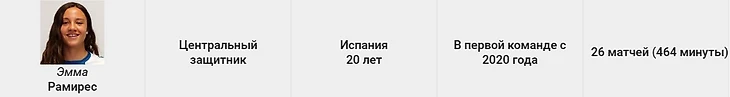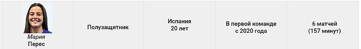 Одна из лучших игроков в составе. Приход Паредес дал ей больше свободы в защите и продвижении мяча при билд-апе. Мария физически крепкий и цепкий защитник, который редко уступал противнику. Стена.
