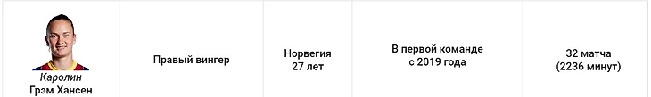 В ноябре она забила тревогу из-за проблем с сердцем. Но в итоге отделалась просто лёгким испугом. Норвежка по-прежнему является настоящим киллером на правом фланге, которого соперникам практически невозможно обезвредить. Она творит волшебство и является превосходным распасовщиком в команде.