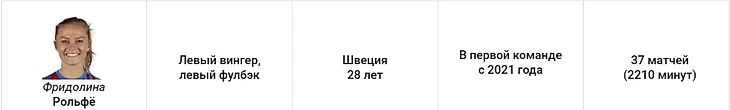 Её подписание стало неожиданностью. Казалось, что Фридолина не впишется в команду, игра которой настолько отличается от той, к которой она привыкла, и всё же Рольфё провела отличный сезон. Высокое качество игры, опыт и целеустремлённость. Он была лучшей на левом фланге.