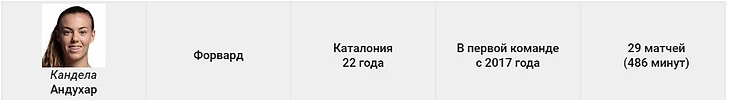 Ещё один перспективный полузащитник «Барсы». Она была в стартовом составе в поединке с «Валенсией» и показала себя с лучшей стороны.