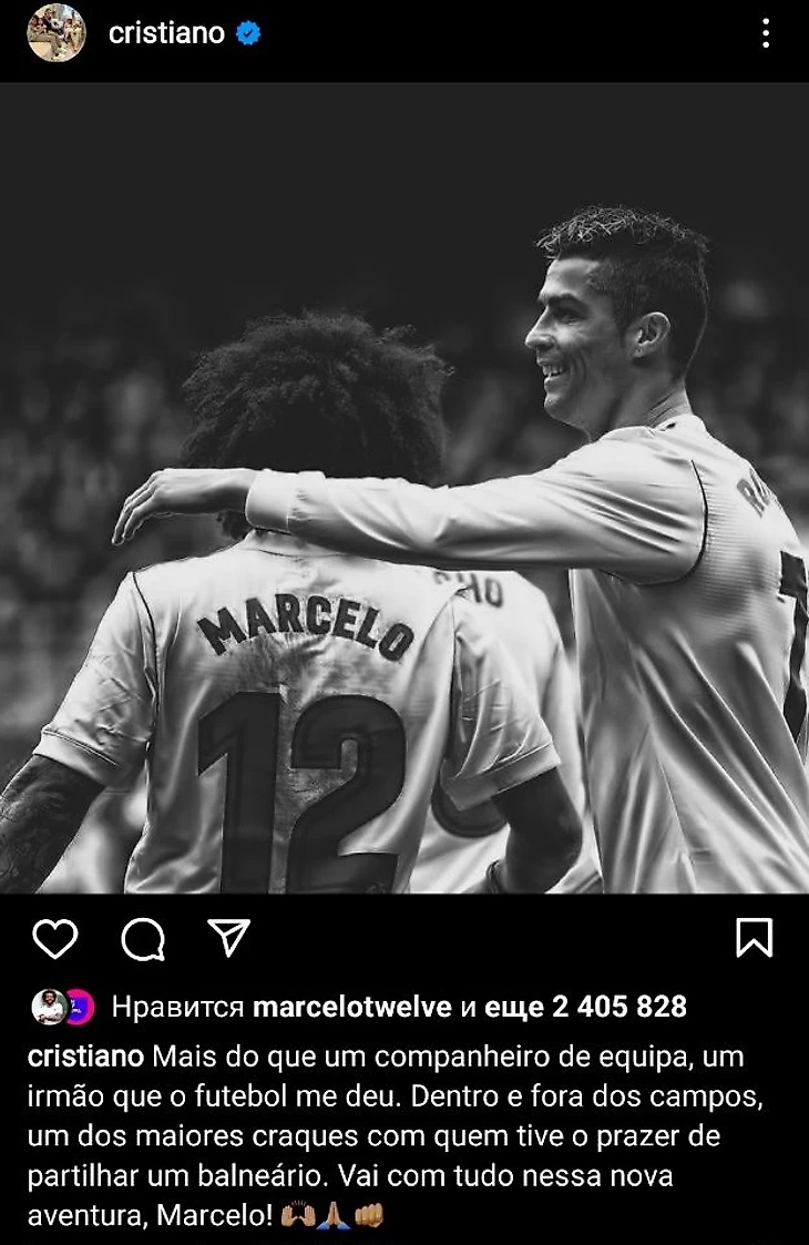 Король говорит: Криштиану выложил новый пост – он высказался об уходе Марсело из «Реала»