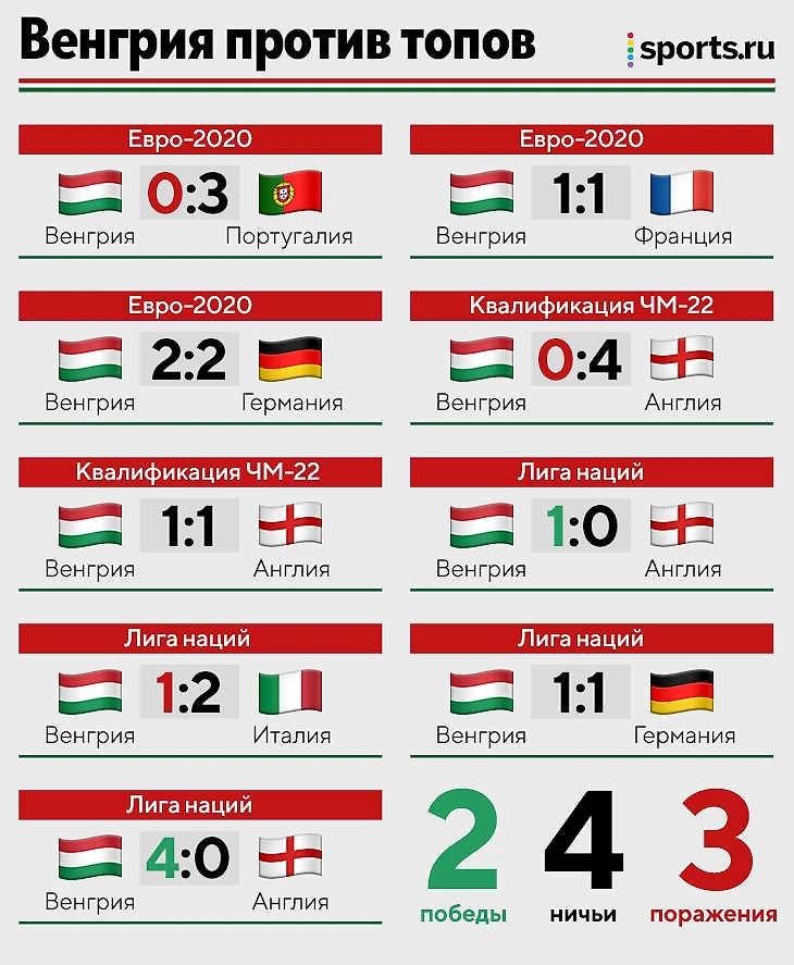 • Англия в квалификации ЧМ-22. Последнее поражение венгров от Англии, которая стабильно хороша на стадии отбора. После этого команда Росси учла ошибки.