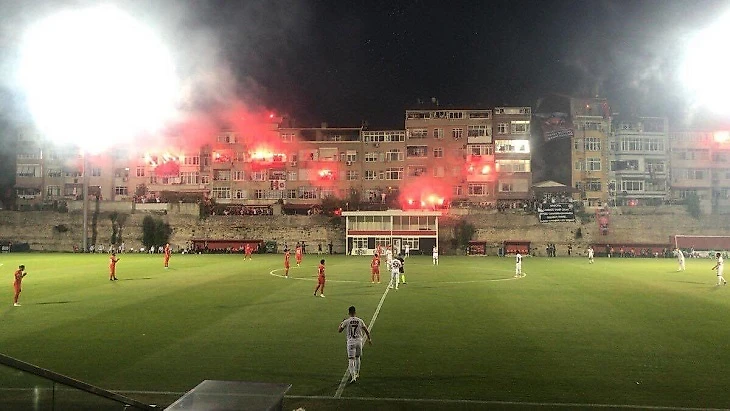 «Карагюмрюк» же играл на родной арене вплоть до выхода в Суперлигу. Не мешала даже пандемия – файеры атмосферно запускали прямо с балконов соседнего дома.