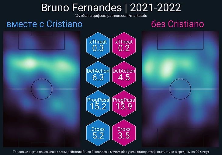 За Роналду приходится дорабатывать. Вот например, Бруно Фернандеш должен больше находиться без мяча, чтобы перекрыть некие проблемы Криштиану в обороне. Больше работы сзади, меньше спереди для уже другого португальца.