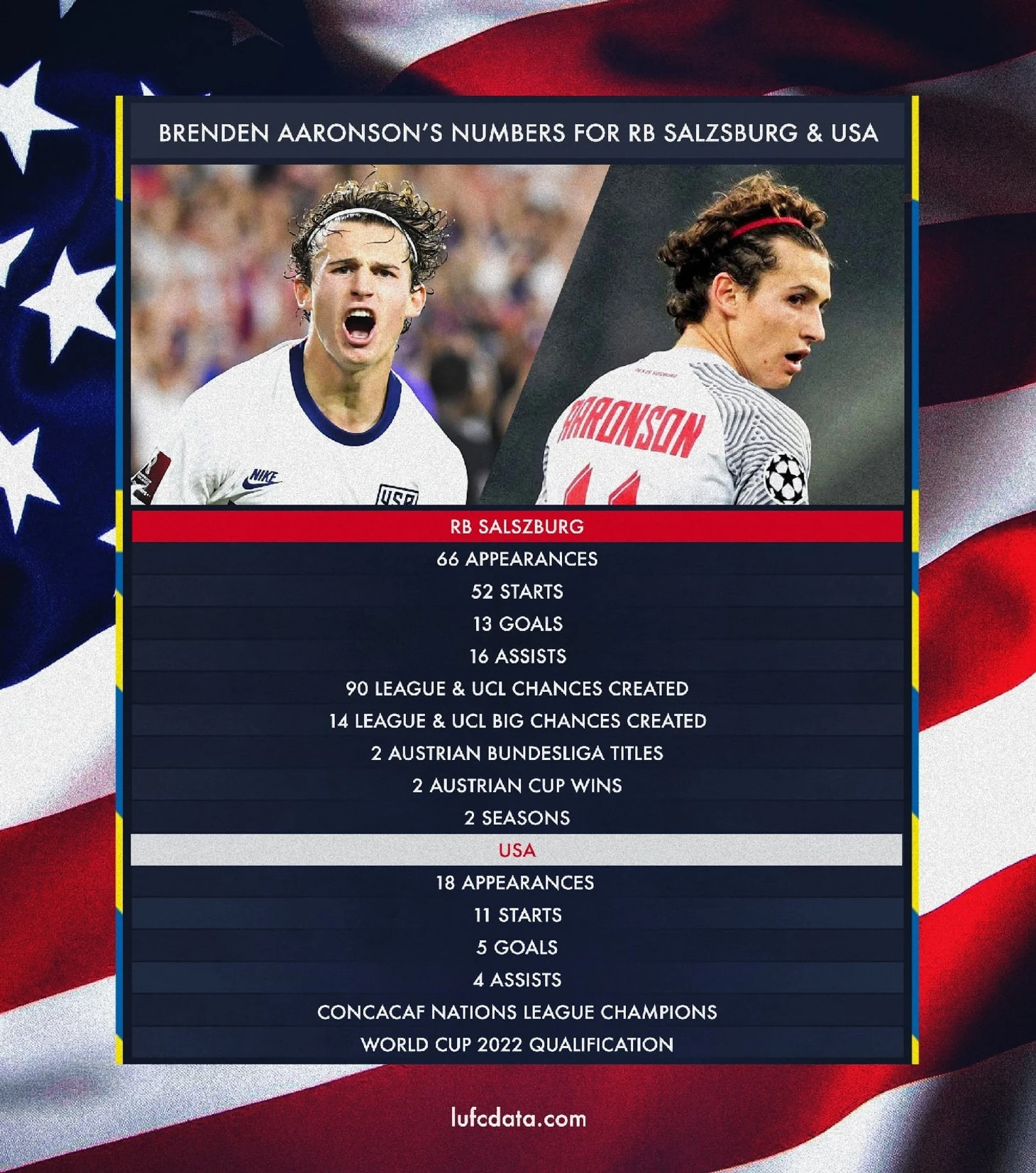 Общая статистика выступлений нашего новичка Брендена Ааронсона за «Зальцбург» и сборную США.