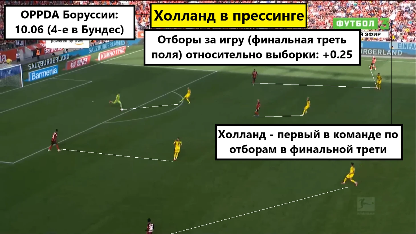 Холланд основную часть обостряющих передач отдает именно в подобных ситуациях – в окружении игроков соперника. Помогает и его статус, как одного из самых опасных нападающих мира, помогает и его бешенное чувство тайминга, помогает и хорошая техника передач. Сочетание крутой игры в роли столба и идеально отточеной игры на свободном мяча.