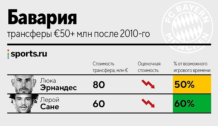 • «Бавария» только дважды решалась на трансферы 50+ – оба игрока потеряли в оценочной стоимости, но вряд ли это слишком показательно. Мюнхенцы явно рассчитывают и на того, и на другого.