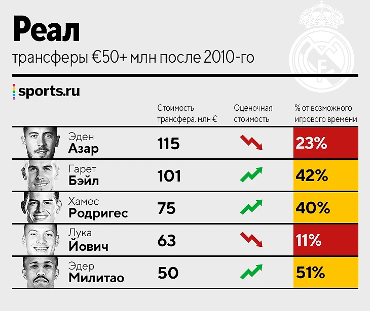• Два трансфера, которые совсем не сработали: Эден Азар в «Мадриде» стал наихудшей копией себя (в первую очередь – из-за травм и особенностей режима), а Лука Йович крепко сел за спиной Бензема. Да, сербу мешают постоянные проблемы со здоровьем (даже из-за зубов), но нужно признать: из игрока, за которым гоняются топ-клубы, в «Реале» он превратился в лавочника.