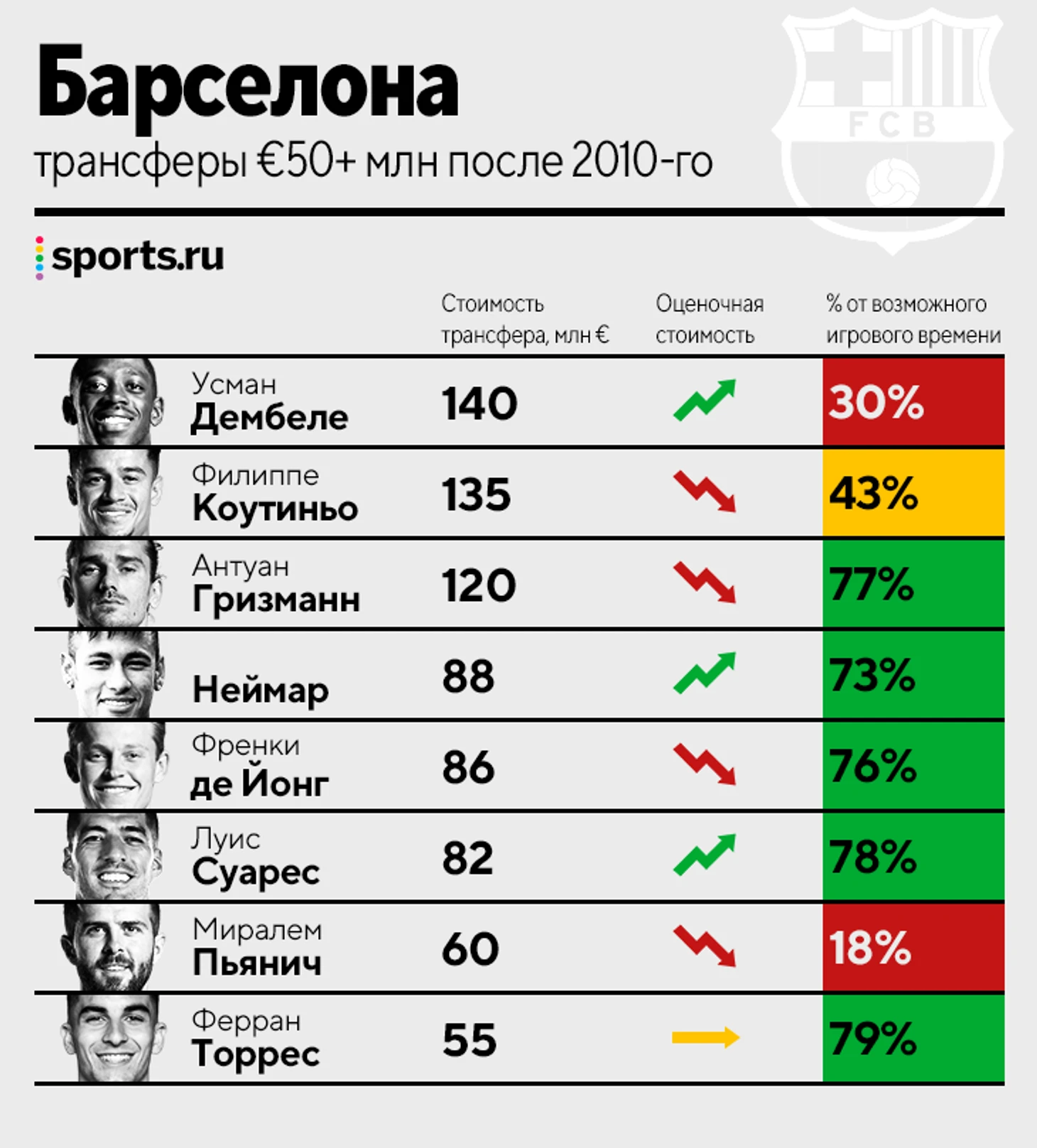 • Три удачных трансфера из восьми – Неймар, Суарес и Ферран Торрес (авансом).