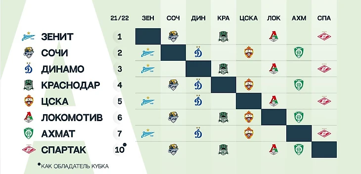 Сегодня в РПЛ Зенит, Спартак, Локомотив, Динамо, Краснодар, ЦСКА -- за исключением форс-мажоров входят в ТОП-8 в любом разобранном виде. Сочи ещё следует это доказать.