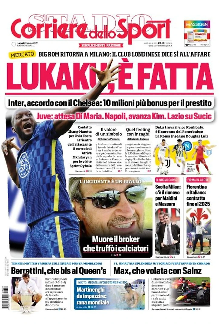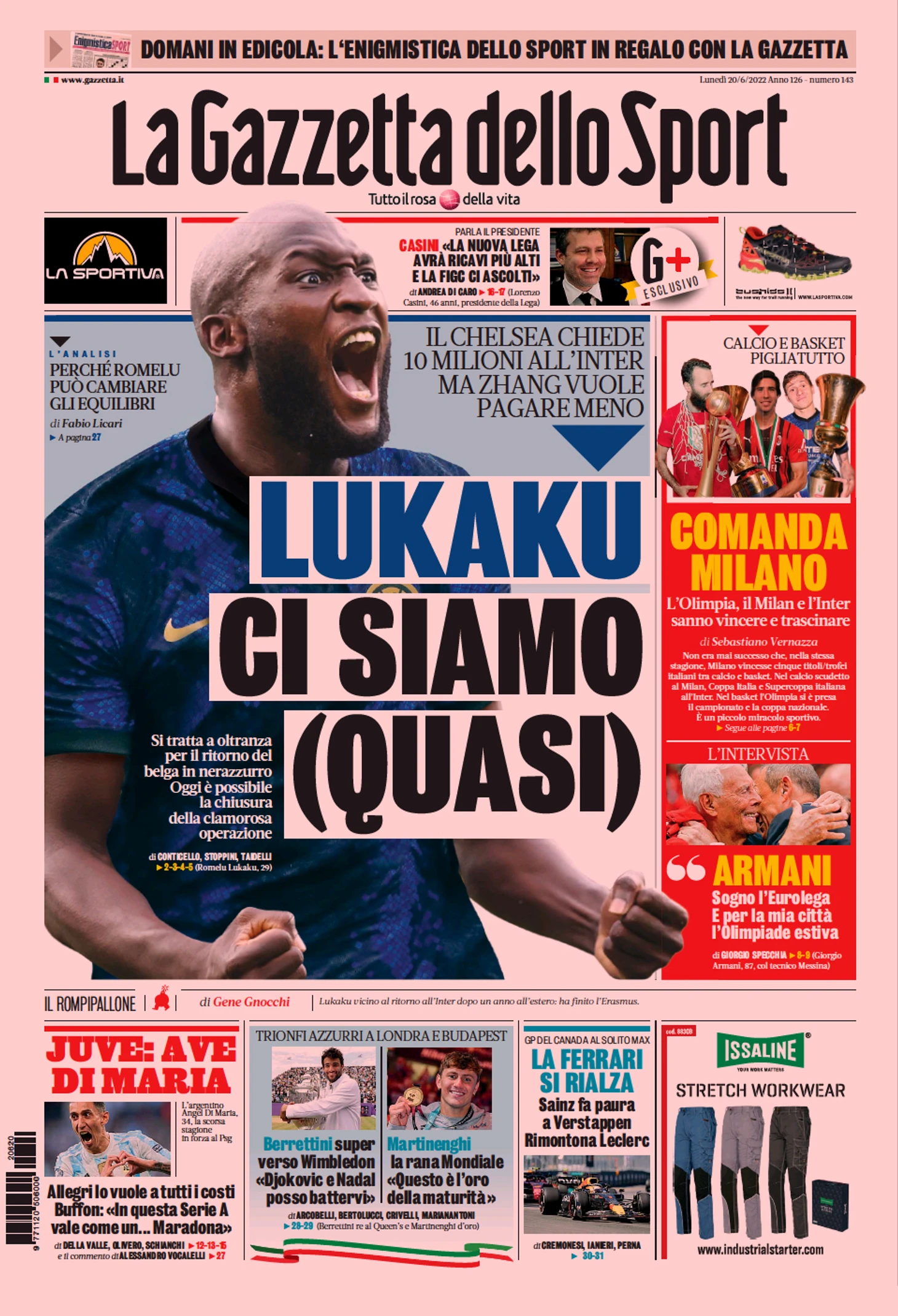 Лукаку, дело сделано. Заголовки Gazzetta, TuttoSport и Corriere за 20 июня