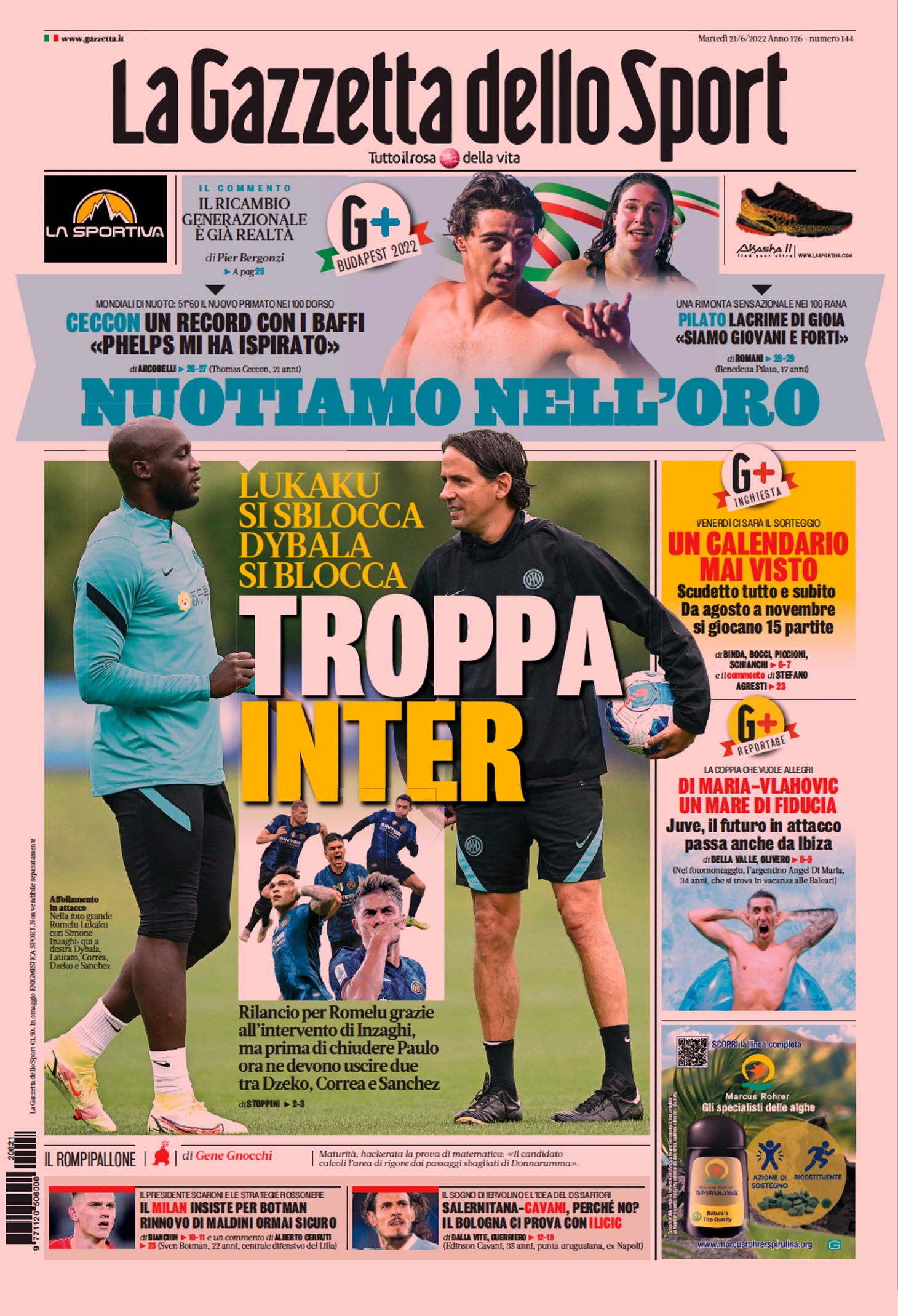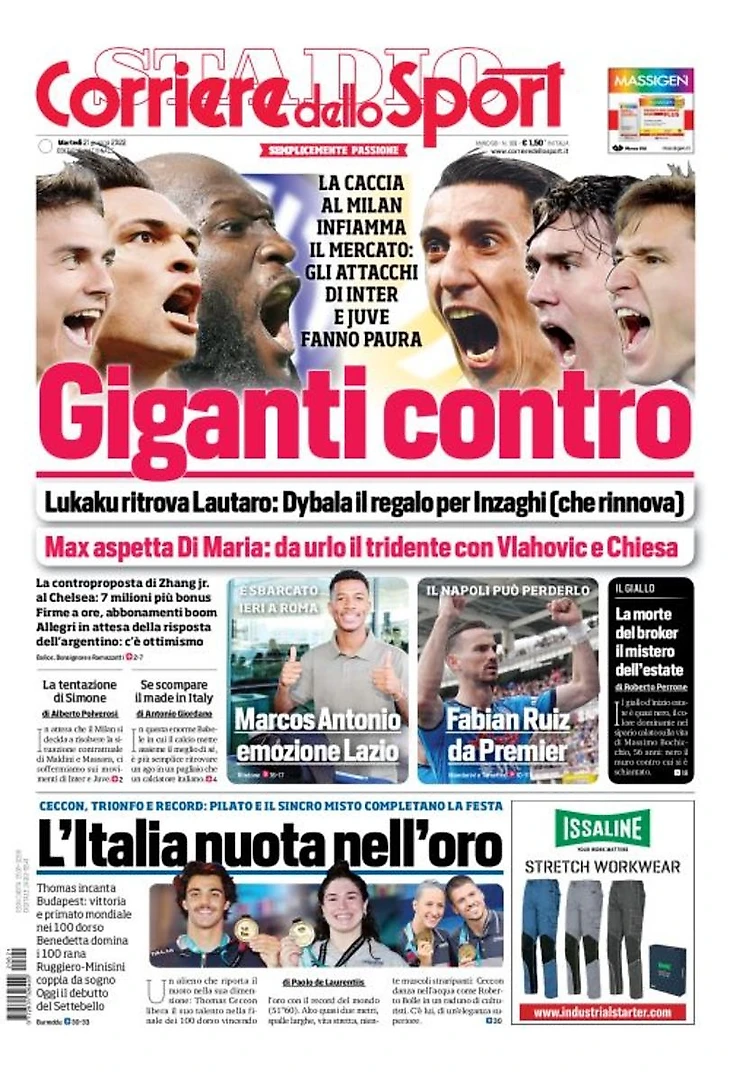 Гиганты против. Заголовки Gazzetta, TuttoSport и Corriere за 21 июня