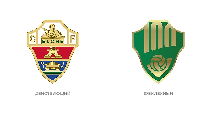 Команда Ла Лиги (La Liga) «Эльче» (Elche CF) представила логотип, приуроченный к 100-летнему юбилею. Эмблема выполнена в золотисто-зеленых цветах в контуре действующего герба. В верхней части расположено стилизованное число «100», а ниже изображение футбольного мяча в ретростиле. Логотип также будет использовать в инверсионной зелено-белой цветовой схеме.