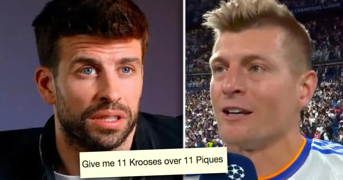 «С одной стороны, у нас есть Тони Кроос, который ведет себя джентльменом по отношению к своему клубу; с другой стороны, у нас есть Пике, который в оставшиеся годы по контракту может заработать 80 миллионов евро в родном клубе, который находится на грани финансового краха».