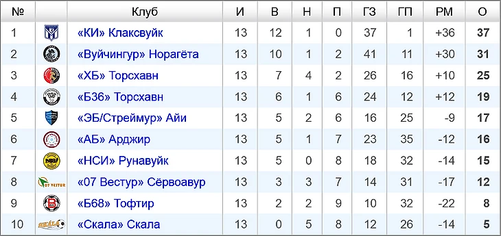 «Б36» Торсхавн – «КИ» Клаксвуйк – 0:1 (0:1) Голы: Хольвад (24)