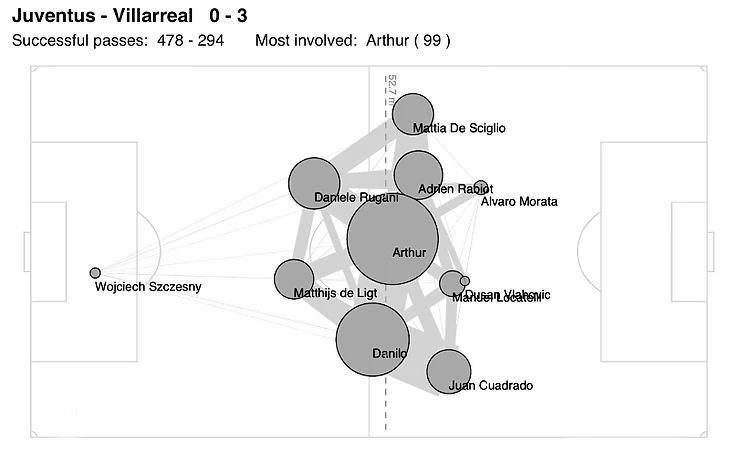 Она работала, пока в основе хватало парней вроде Дибалы и Дугласа Косты. Без креативных художников и взрывных индивидуалистов Аллегри почти беспомощен. «Юве» слишком статичен, медленно и безыдейно двигает мяч. Туринцы проиграли всем крепким соперникам, согласившимся отдать им мяч. В ответке с «Вильярреалом» они целый час провели на чужой половине, но выжали всего 1,1 xG. Карта передач напомнила подкову. Это классический пример стерильного владения: левый защитник пасовал левому центрбеку, тот катил напарнику, а тот – правому защитнику. Ювентини не знали, что делать с мячом.