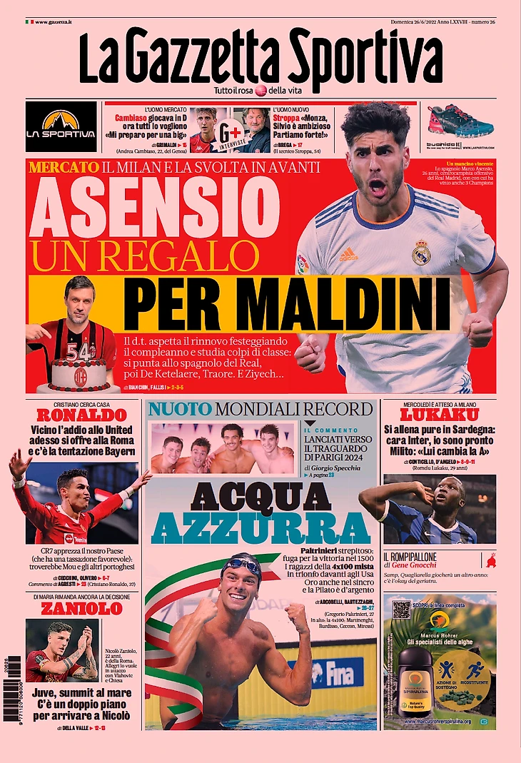 «Готов, «Юве»?». Заголовки Gazzetta, TuttoSport и Corriere за 26 июня