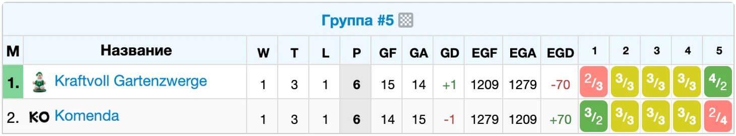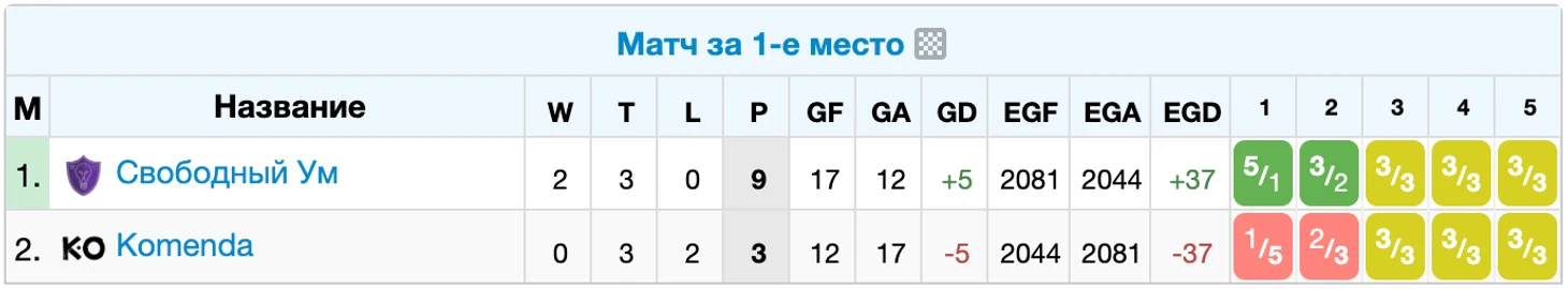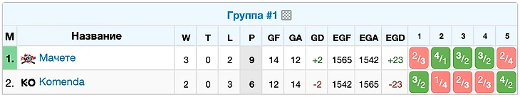 В последнем туре мы проиграли 2-3 вылетающему Летучему Голландцу. Однако нас спасли ребята из Breaking Bad (лютый респект 👏), которые остановили накатывающую на финиш Тёмную лошадку. Коменда оказалась выше только по разнице забитых и пропущенных мячей. ТМ попала в стыках на Мачете, которые грохнули претендента с +600 (грохнули и нас бы) 😰.