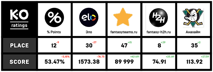 Самым важным рейтингом стал — Fantasy-h2h, ведь именно здесь отмечается реальная сила команды, качественная, а не количественная составляющая. Топ-10 👌